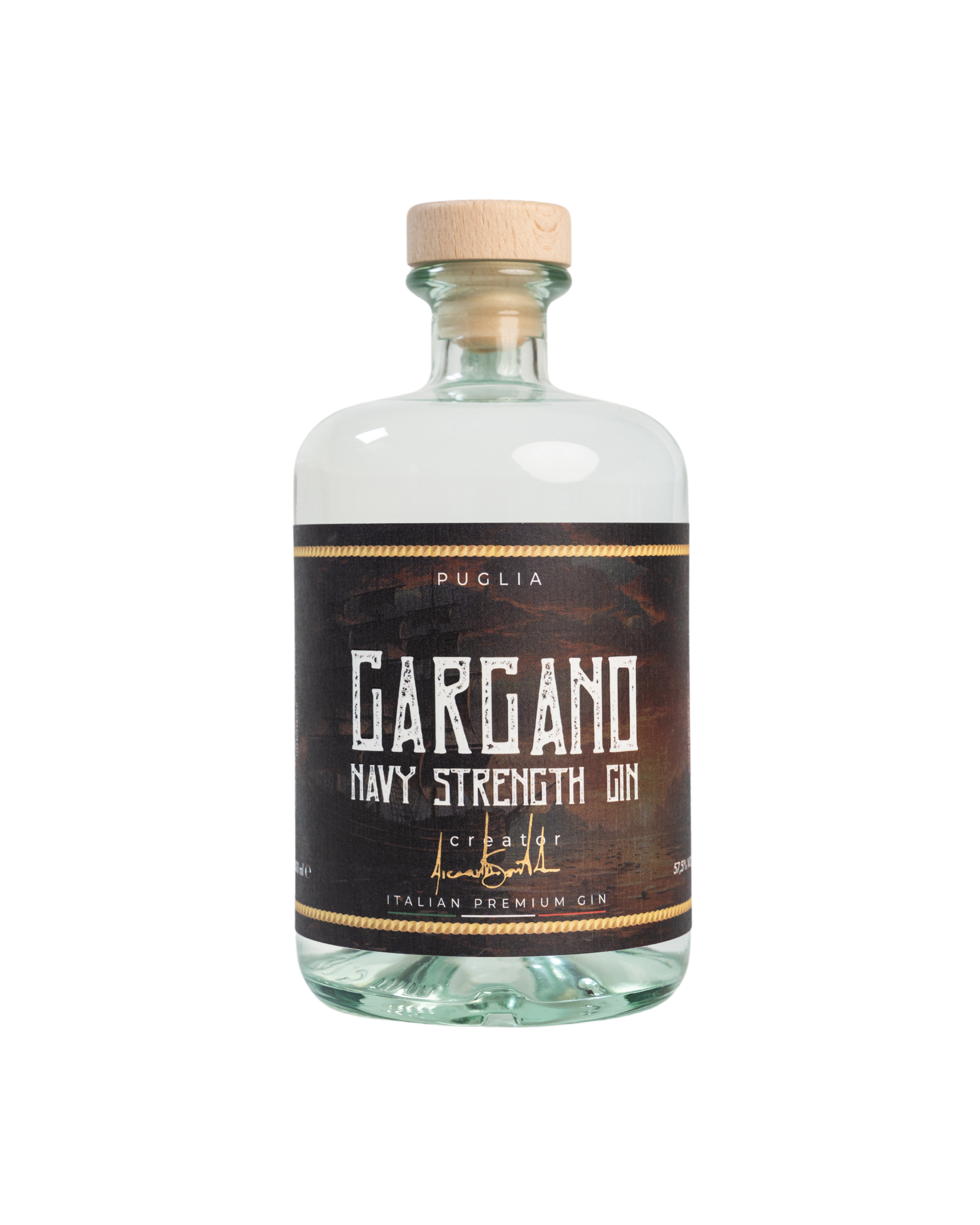 Con il doppio del ginepro rispetto al suo predecessore Gargano dry gin, risulta al naso decisamente intenso e complesso. Al palato si evincono le note resinose e balsamiche del ginepro comune, raccolto nei boschi del Gargano, mentre le note speziate e agrumate del coriandolo e del pompelmo prolungano il finale. È un Distilled Compound Gin prodotto distillando le 3 botaniche singolarmente e poi unendo i singoli distillati. È legato strettamente alla Gran Bretagna: la Royal British Navy giocò un ruolo importante nella produzione di questa tipologia di gin ad alto contenuto alcolico. Durante le lunghe traversate, veniva somministrato ai marinai che allietavano così le ore difficili e tristi. Inoltre si rilevava anche un ottimo combustibile per accendere la polvere da sparo. Si racconta che per oltre 2 secoli nessuna nave della flotta britannica salpasse senza avere a bordo una scorta di Navy Strength.